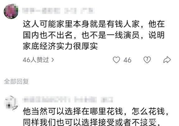 其实有网友在评论里说得很直白,很多东西到了国外价格并没有那么离谱,吃个海鲜也就是普通消费,他在美国吃龙虾就是炫富,可他回上海之后,带着母亲出去吃一桌丰富的中餐,大家看了反而觉得很正常,不再有人用放大镜去揣测。对于“钱从哪来”这种问题,他的态度也很直接,就是一句“努力工作,获得应有的报酬”。